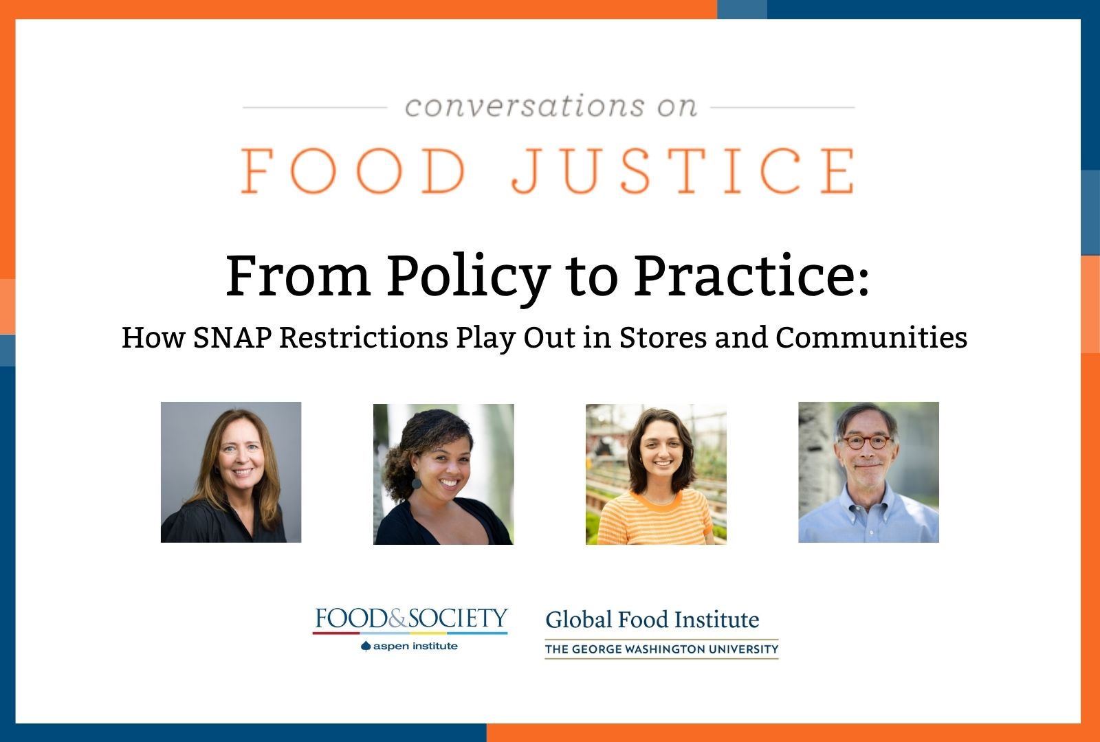 This is a live webinar that will be recorded. Part I of this Conversations on Food Justice examined the policy landscape and justice implications of restricting SNAP purchases. Part II brings the conversation to the ground.