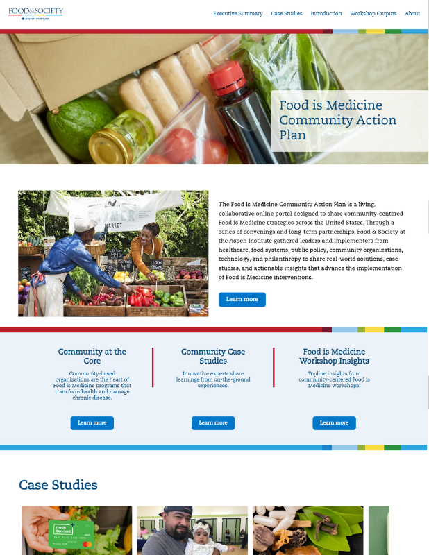Food & Society at the Aspen Institute launched its Food is Medicine Community Action Plan to support community-based organizations (CBOs) in scaling food-based health interventions. Developed in partnership with organizations across the United States who joined Food & Society at convenings hosted in Tulsa, Tucson, and Boston, and partners who shared case studies with critical on-the-ground experience, the Action Plan recognizes the central role local organizations play in addressing both health outcomes and food security through innovative nutrition programs.